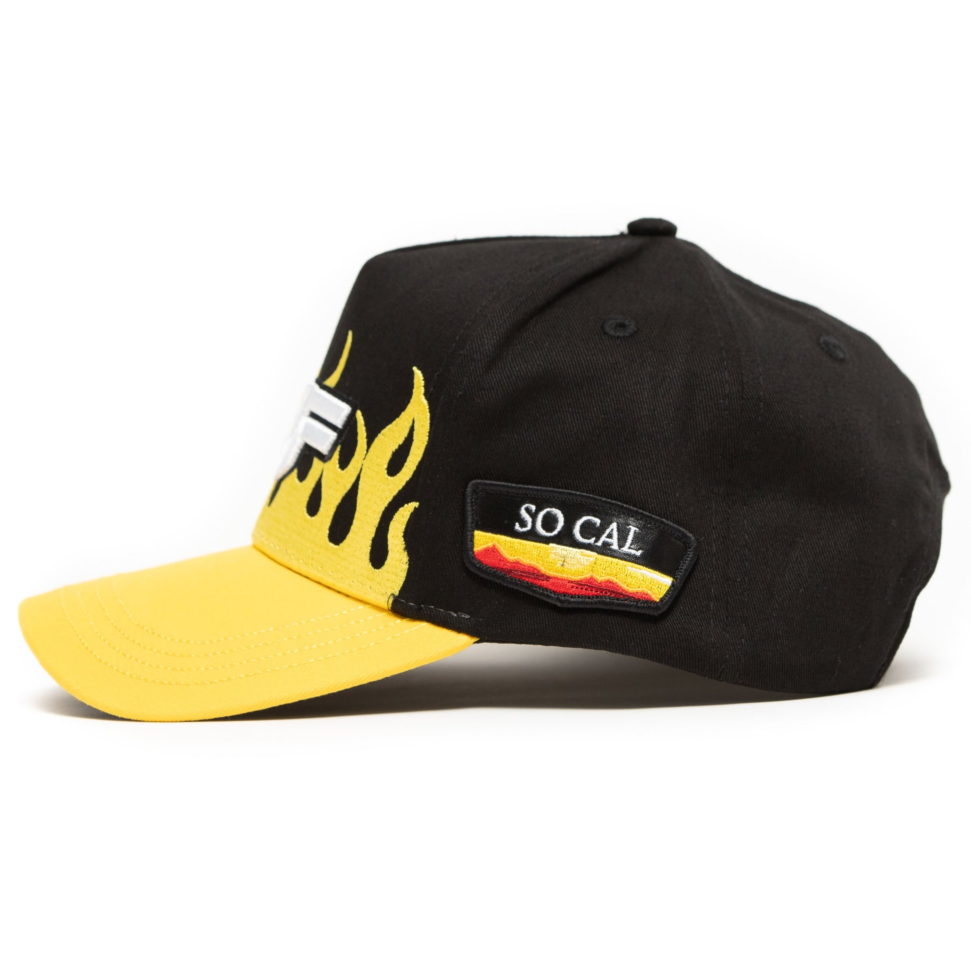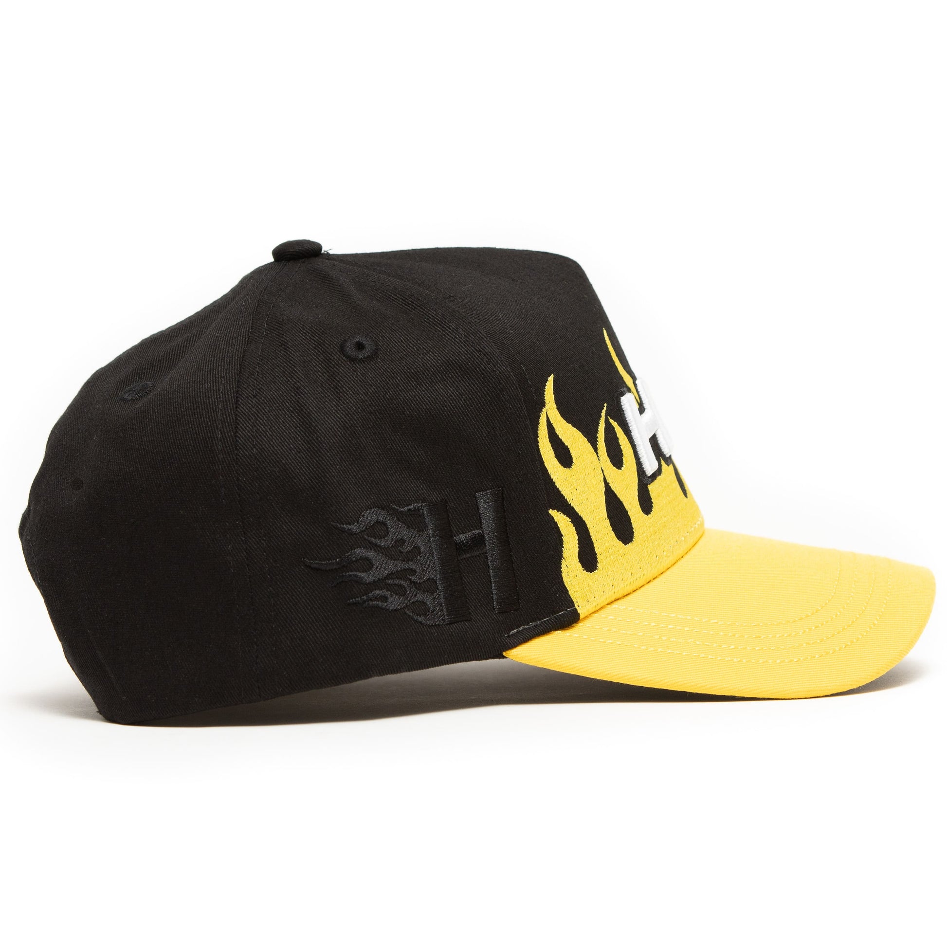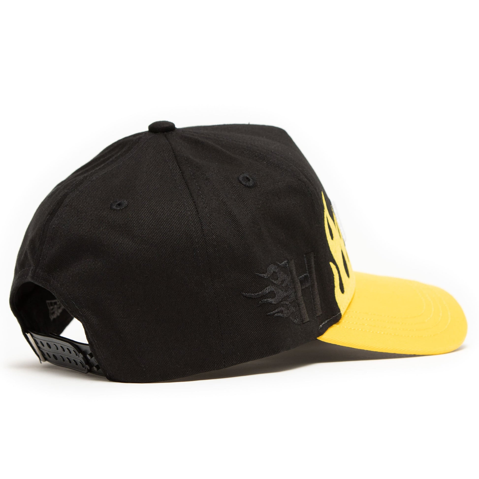 A Highly Anticipated Black Snapback with Yellow Flames from The Night Run Collection